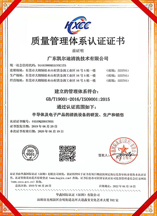 质量管理体系认证证书